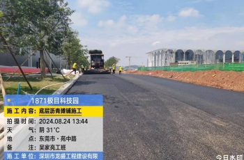 东莞极目科技园沥青摊铺施工 在东莞极目科技园内,一场沥青摊铺施工正在紧锣密鼓地进行。这一举措,将为整个工业园带来诸多积极影响。 对于工业园来说,选择铺沥青路面好处多多。首先,沥青路面平整、抗扬尘,能够有效减少车辆行驶过程中的颠簸,提高行车的安全性和舒适性。无论是员工的通勤车辆,还是运输货物的卡车,都能在良好的路面条件下更加顺畅地行驶。其次,沥青路面具有良好的耐磨性和耐久性,能够承受工业园内频繁的车辆往来和重型设备的碾压,减少路面损坏和维修成本。再者,沥青路面的黑色外观简洁大方,能够提升工业园的整体形象,为企业营造一个更加专业、现代化的生产环境。 此次沥青摊铺施工将对极目科技园产生深远的影响。一…